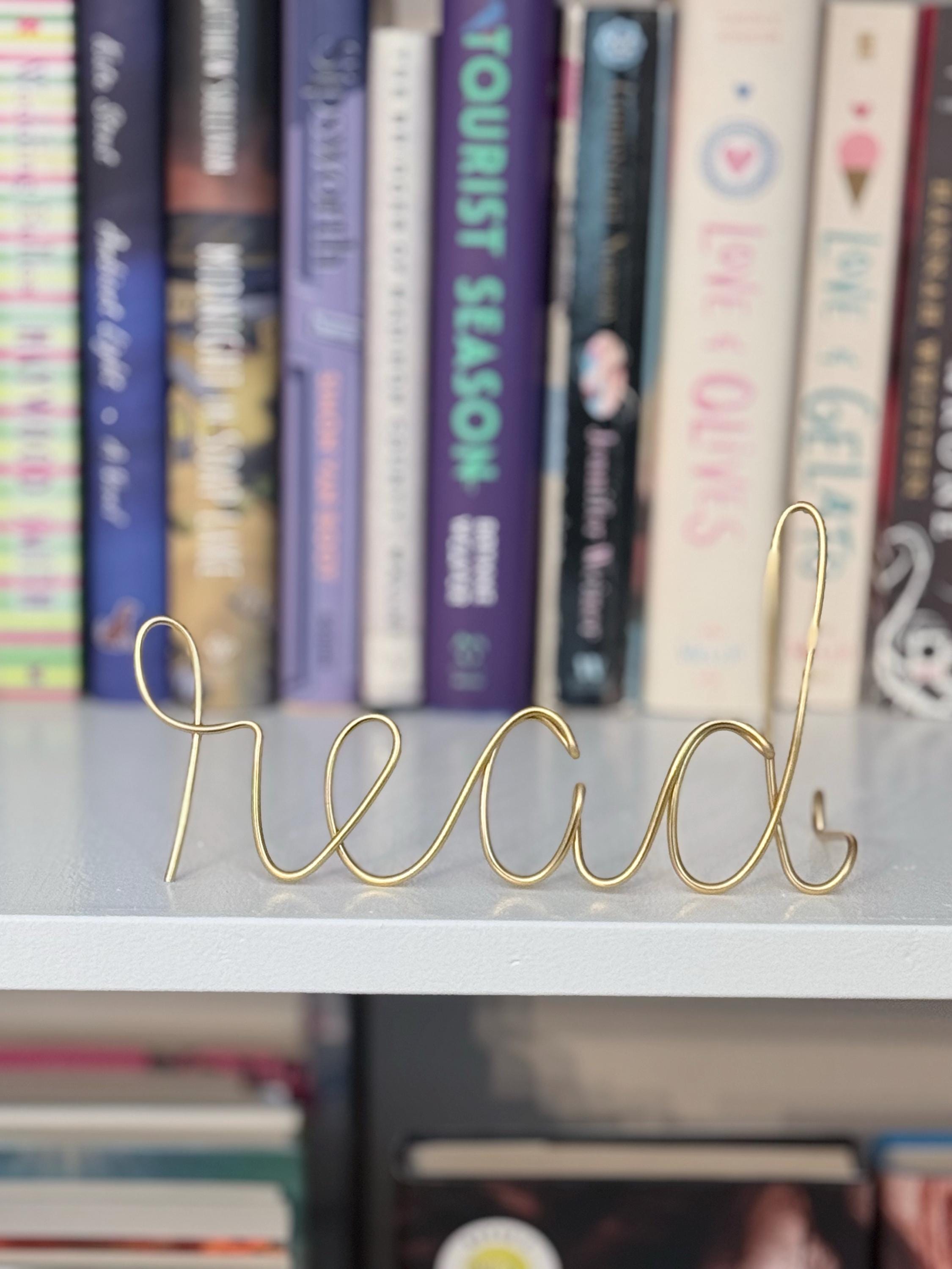Need a gift for a book lover, bookworm, best friend, or home decorator? This handmade wire “read” sign makes a thoughtful addition to a reading nook, library shelf, or desk. Shaped by hand from a continuous length of sturdy aluminum wire, it’s available in your choice of black, gold, or silver.